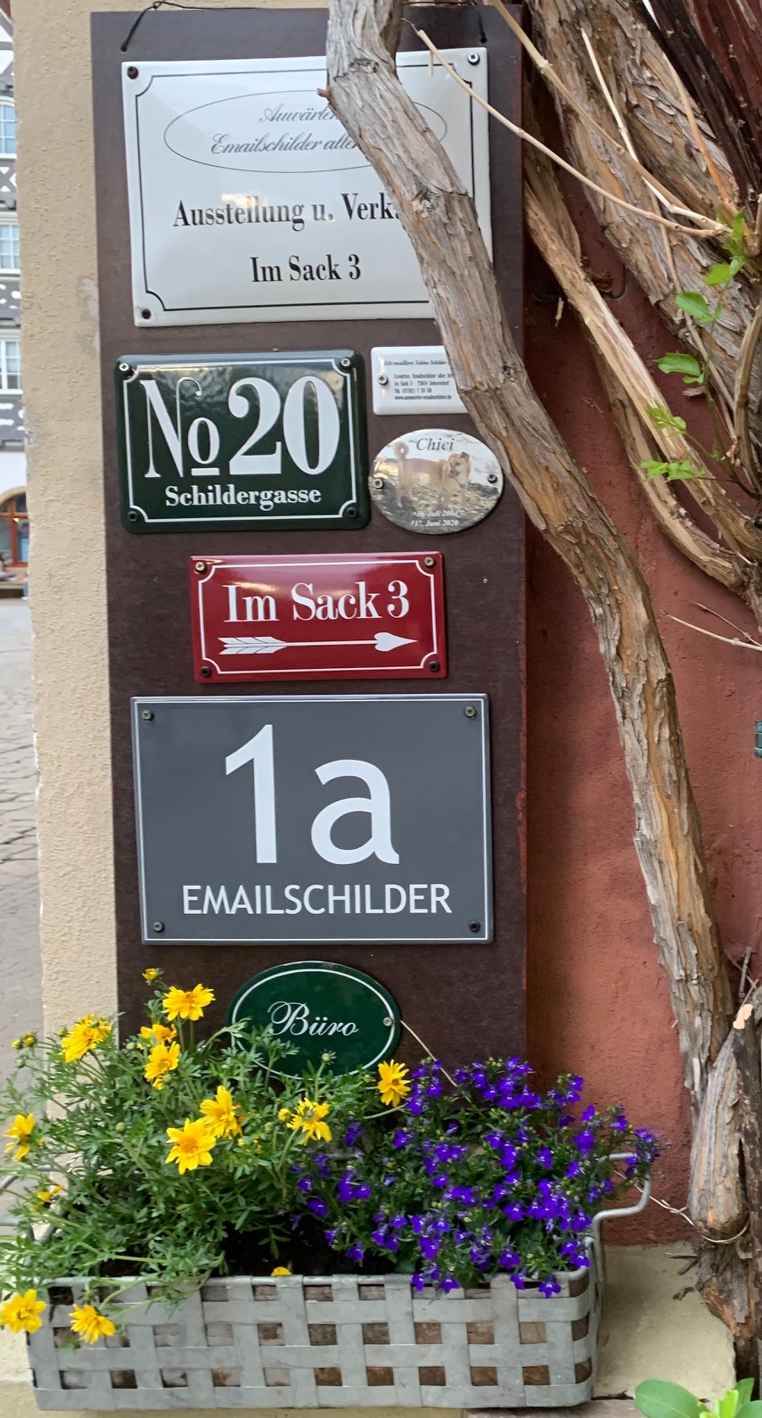 1997 gründete ich mein Unternehmen im schwäbischen Württemberg, das seitdem viele Privatkunden aus allen Landesteilen glücklich gemacht, aber auch jede Menge Gewerbetreibende, Verbände, Vereine und Kommunen mit den unterschiedlichsten Schildern versorgt hat. Selbst aus der Schweiz, Südtirol oder aus dem Norden erreichen mich seit nunmehr fast 30 Jahren Aufträge (auch aus dem künstlerischen Bereich), deren gute deutsche Qualitätsarbeit stets geschätzt wird. Und auch mich erfreut und zutiefst befriedigt.