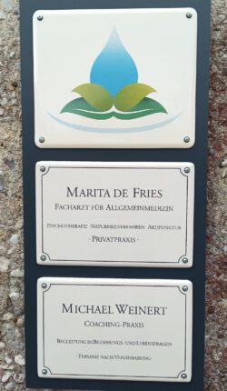 Für Praxen, Anwälte und Freiberufler jeder Sparte ist ein Emailschild die anspruchsvolle Lösung, um Aufmerksamkeit und Werbung im Außenbereich zu erzielen und Kundschaft anzusprechen. Ob klassisch gestaltet in Ihrer persönlichen Wunschschrift oder mit vorhandenen Logo oder Signet in Ihren Hausfarben ergänzt.